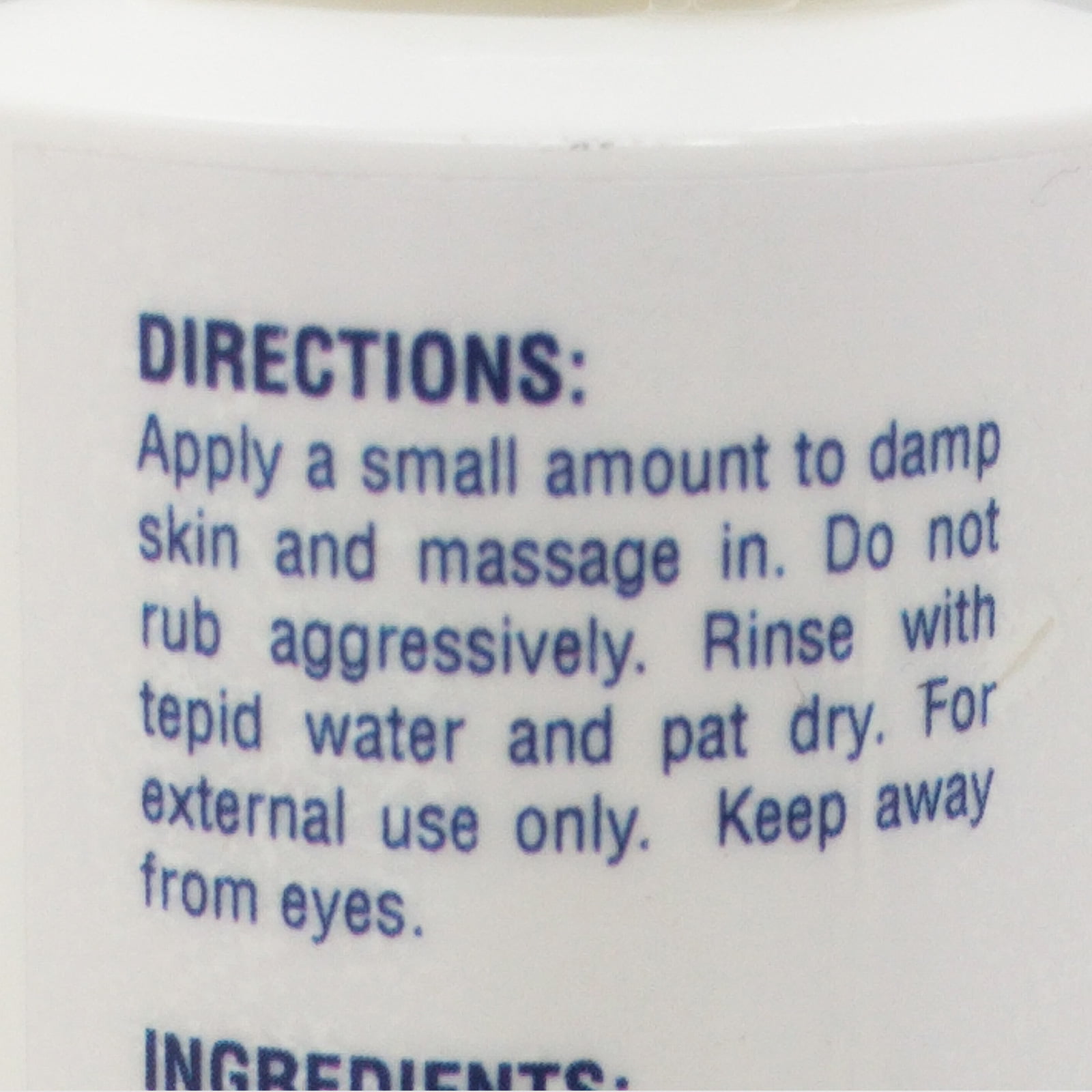 DIRECTIONS: Apply a small amount to damp skin and massage in. Do not rub aggressively. Rinse with tepid water and pat dry. For external use only. Keep away from eyes.